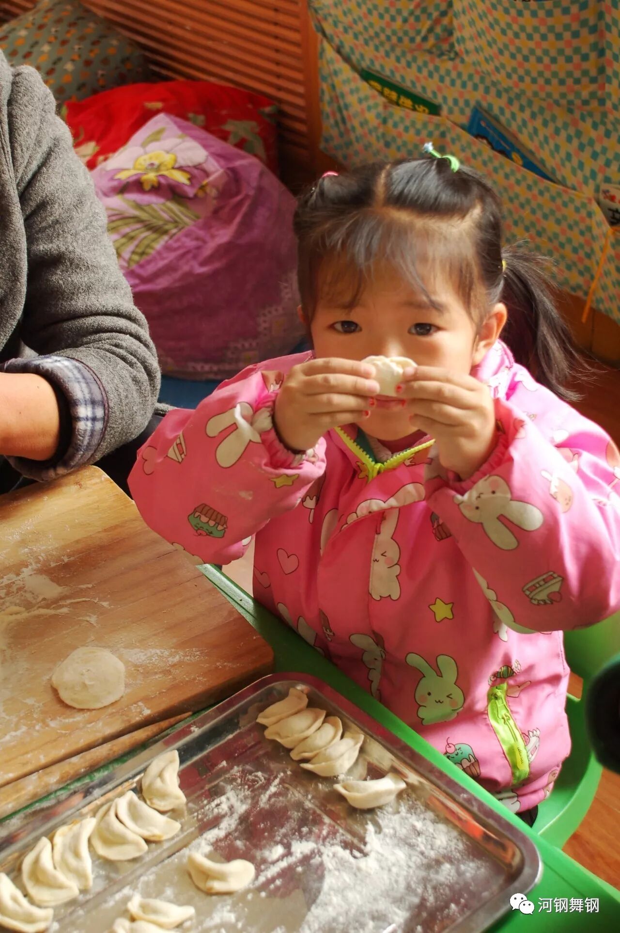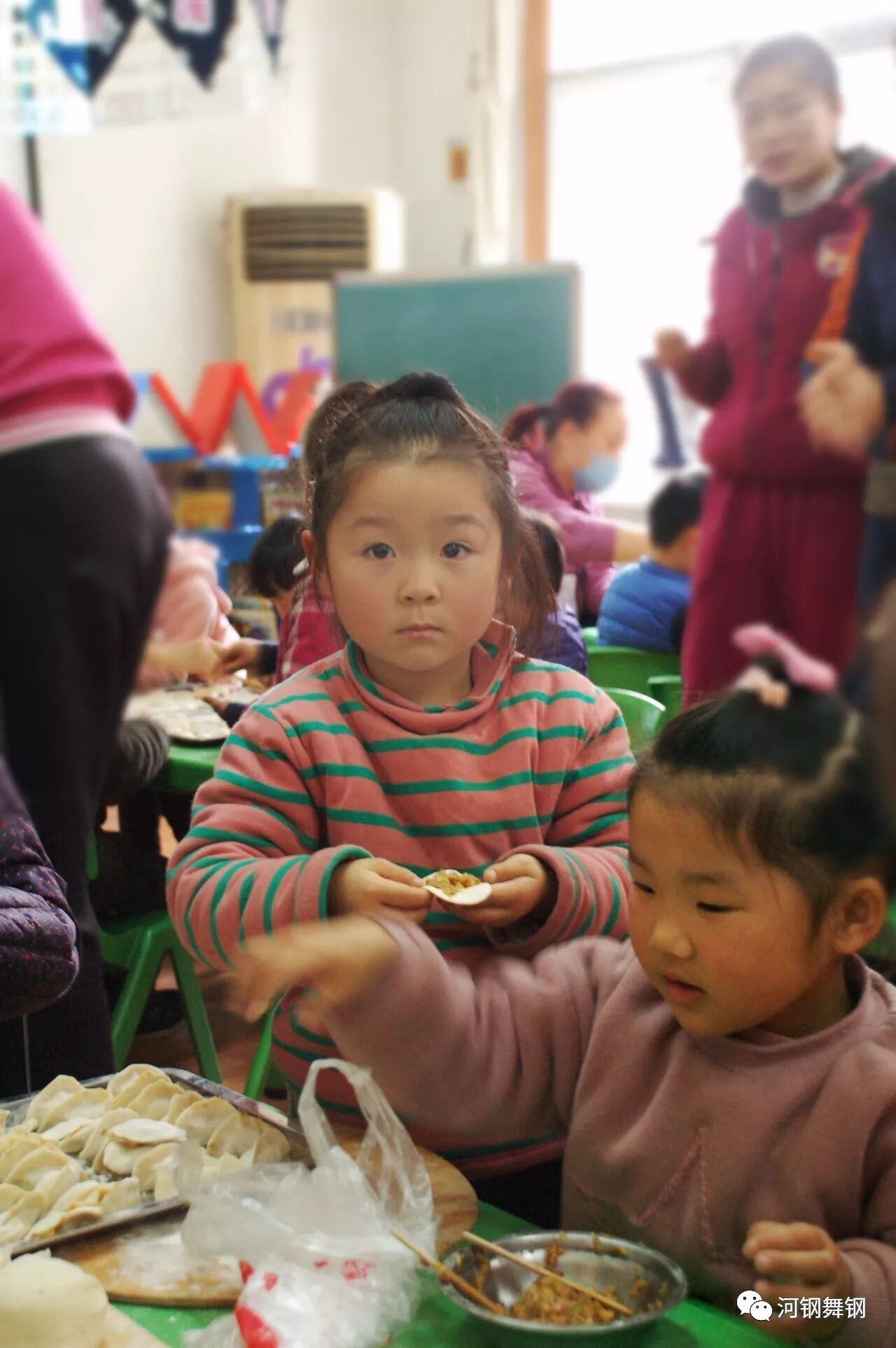 12月22日下午,在传统节日“冬至”到来之际,河钢舞钢幼儿园开展“迎冬至包饺子”亲子活动,邀请家长走进班级,和孩子们一起包饺子,吃饺子,共同欢度这个中国传统特色的节日。