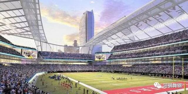 该座体育场是美国橄榄球联盟中最大的体育场,也是美国南加州建筑群重要的组成部分,将于2019年开幕。