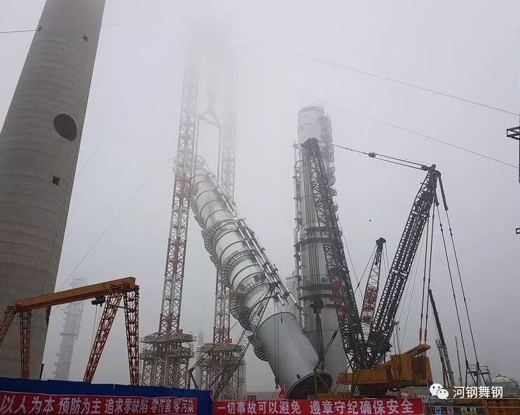 此次吊装的二甲苯塔下部直径10.6米,上部直径9米,高113.1米,是大连恒力石化单体最重、高度最高的设备,打通了大连恒力石化炼化一体化项目的关键节点,为确保整体目标的实现奠定了坚实的基础,同时刷新了中国炼化行业百米千吨级塔器整体到货吊装质量的纪录,在“造福长兴岛,扬威渤海湾”的战略中具有至关重要的里程碑意义。大连恒力石化项目是我国打造世界级七大炼化基地之一,在该项目建设中,河钢舞钢为该项目累计供应高端石化装备用钢达两万余吨,用于制造加氢反应器、热高压分离器、气化炉等关键装备,并实现了替代进口。